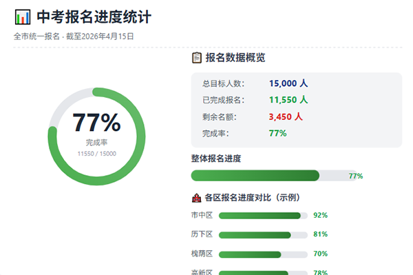 区县统计:报名人数、完成率、普高/职高志愿填报率等
